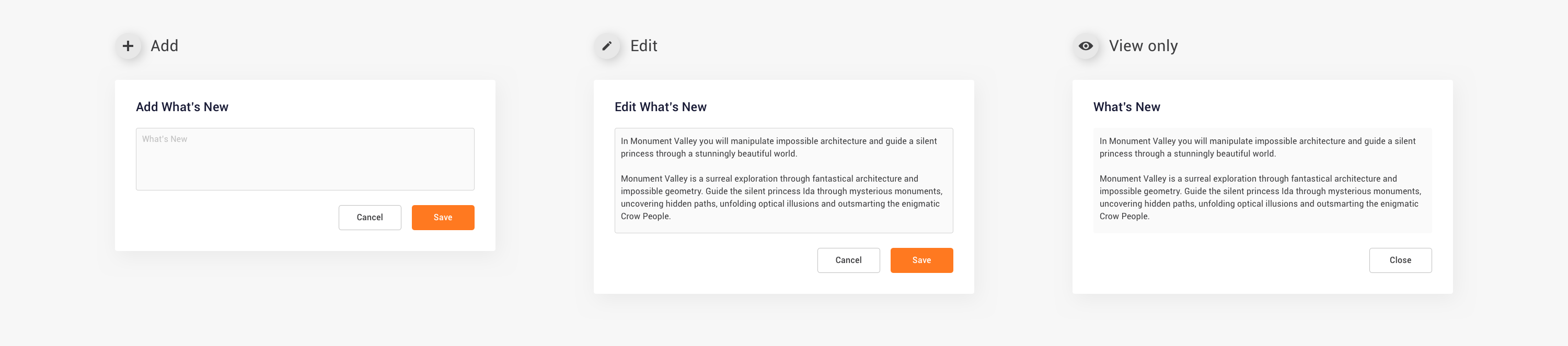 What’s new - Add/Edit/View