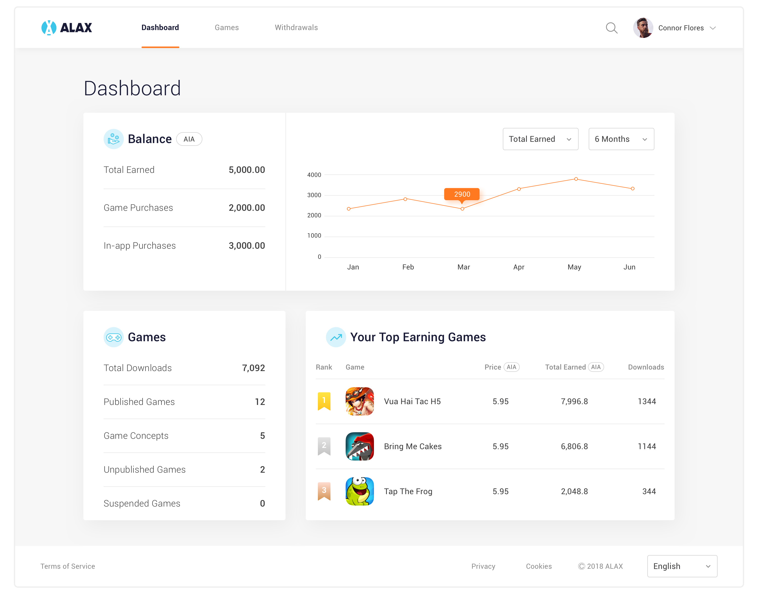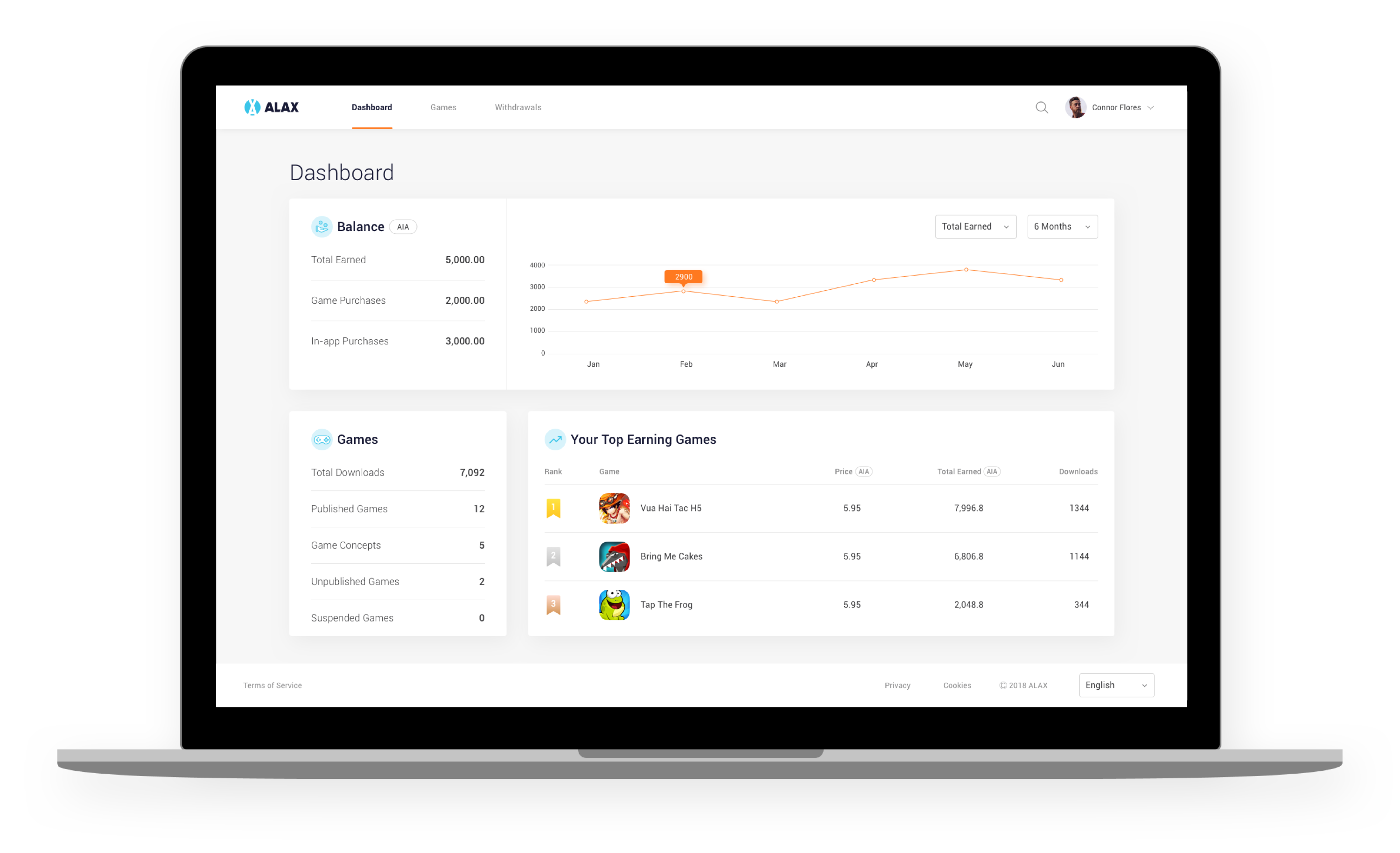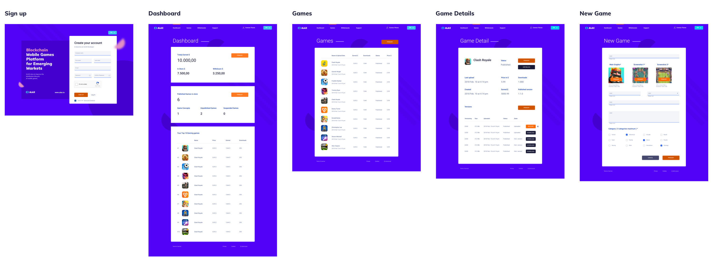 - Full control over your game or application - ALAX provides access to developer interface allowing for seamless game distribution. This interface grants access to developer accounts where you can upload or update games, monitor game statistics, and access your revenue instantly.