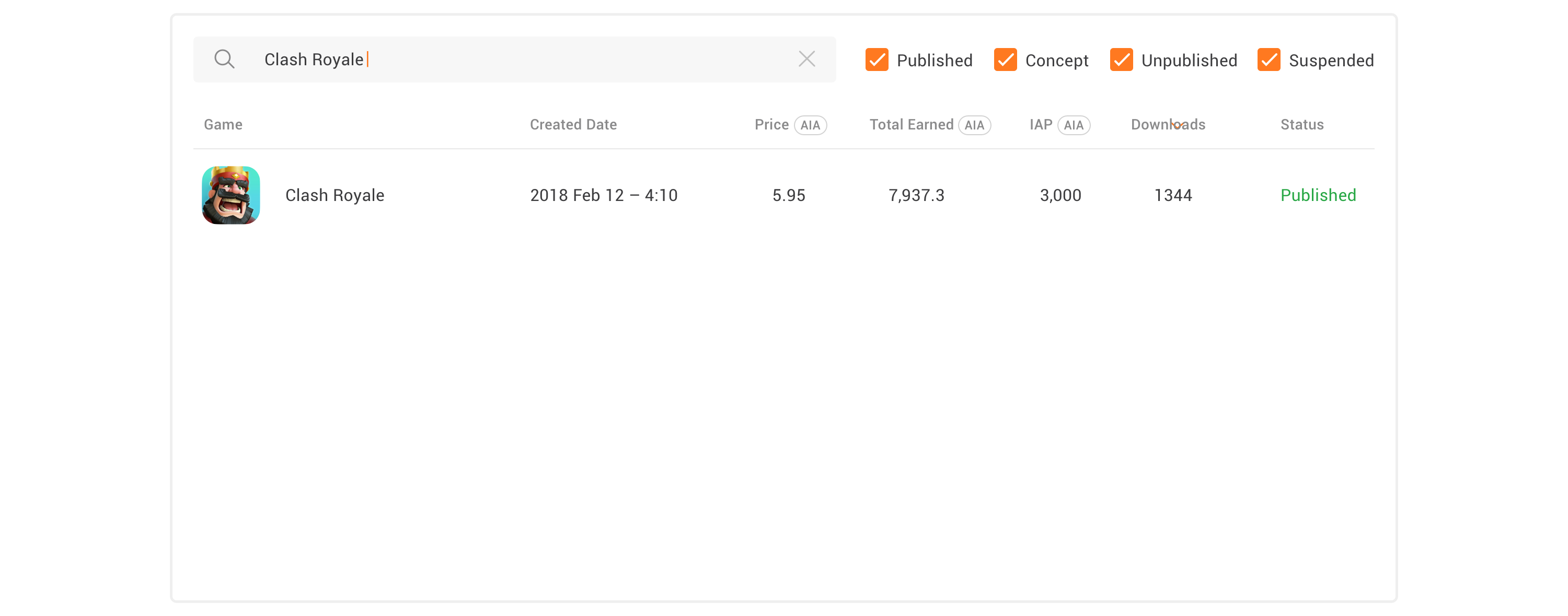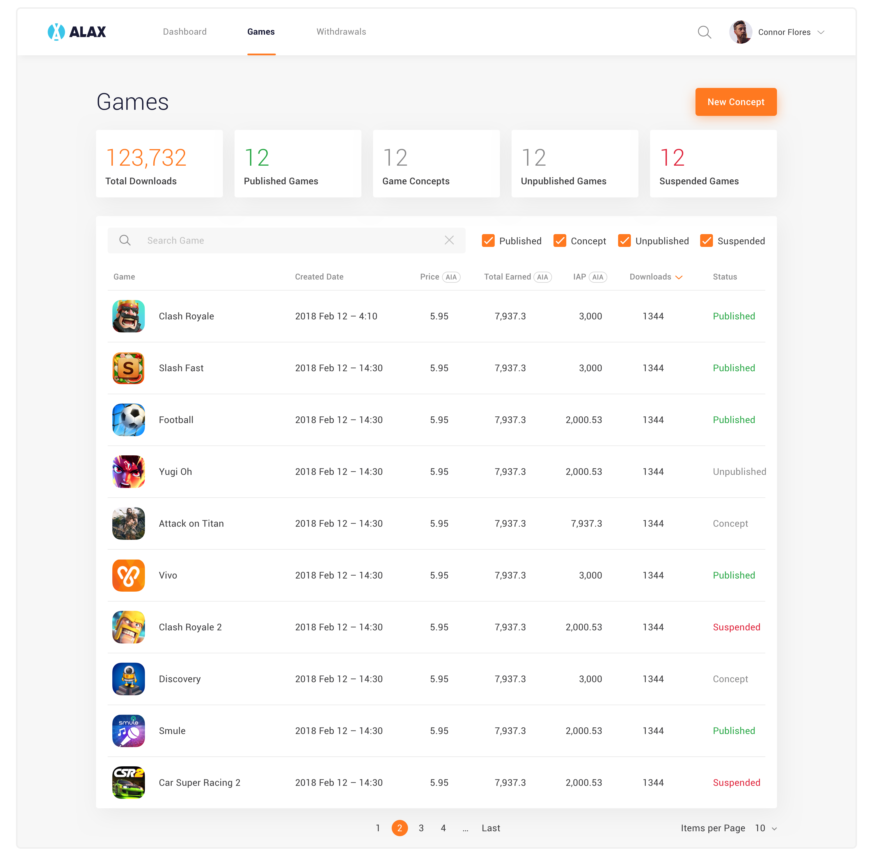 Game Developer can have an overall look at their games’ performance in Dashboard. They can also filter to change the graph that demonstrates the growth of their games.