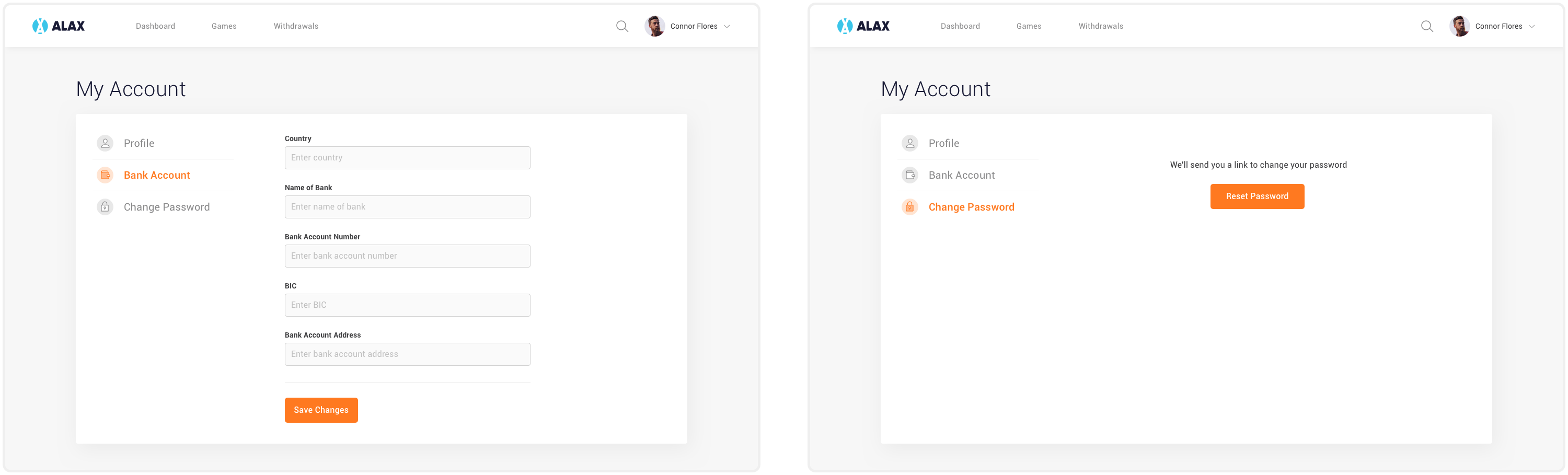 This is where Game Developer manage their account, add bank information and change password.