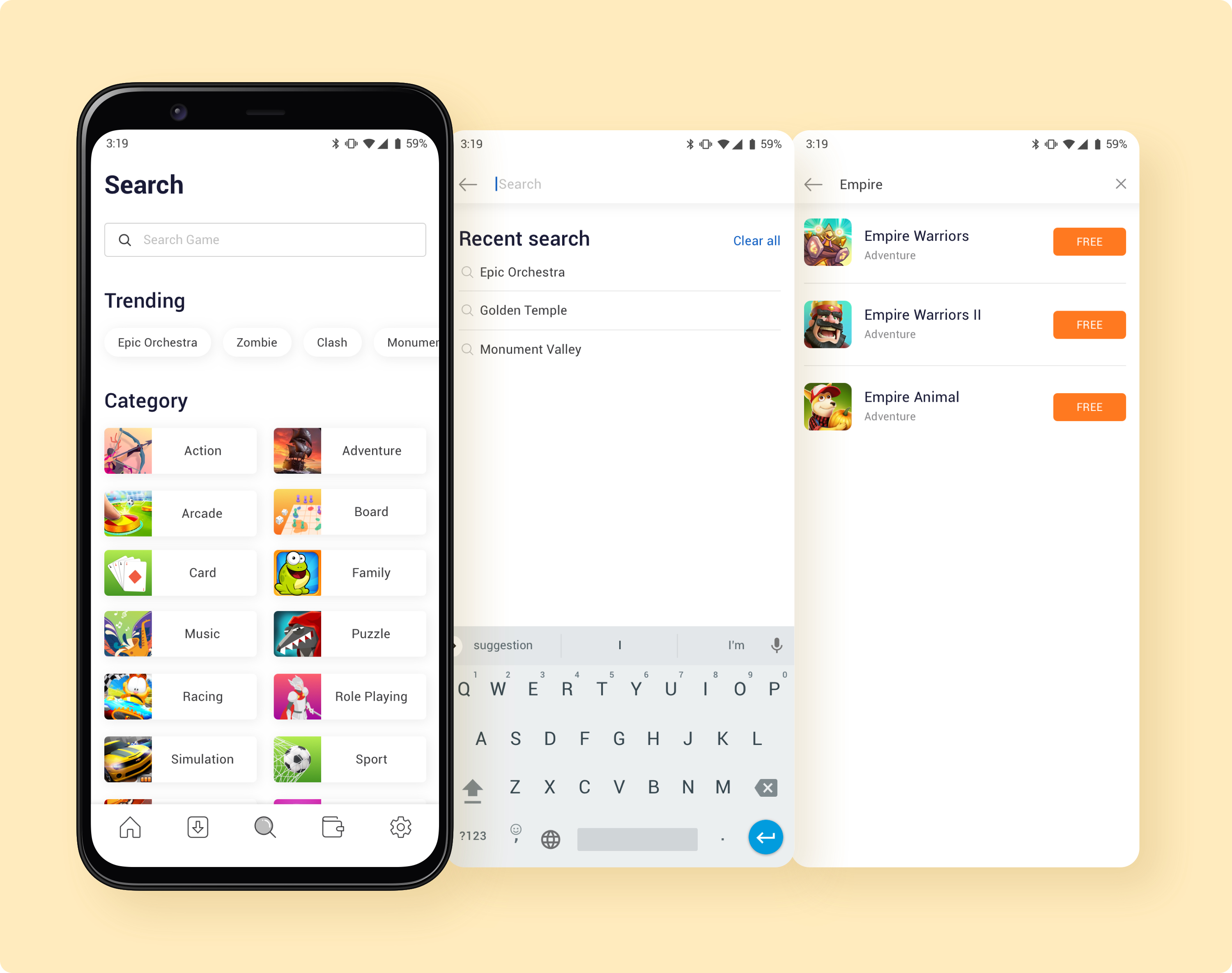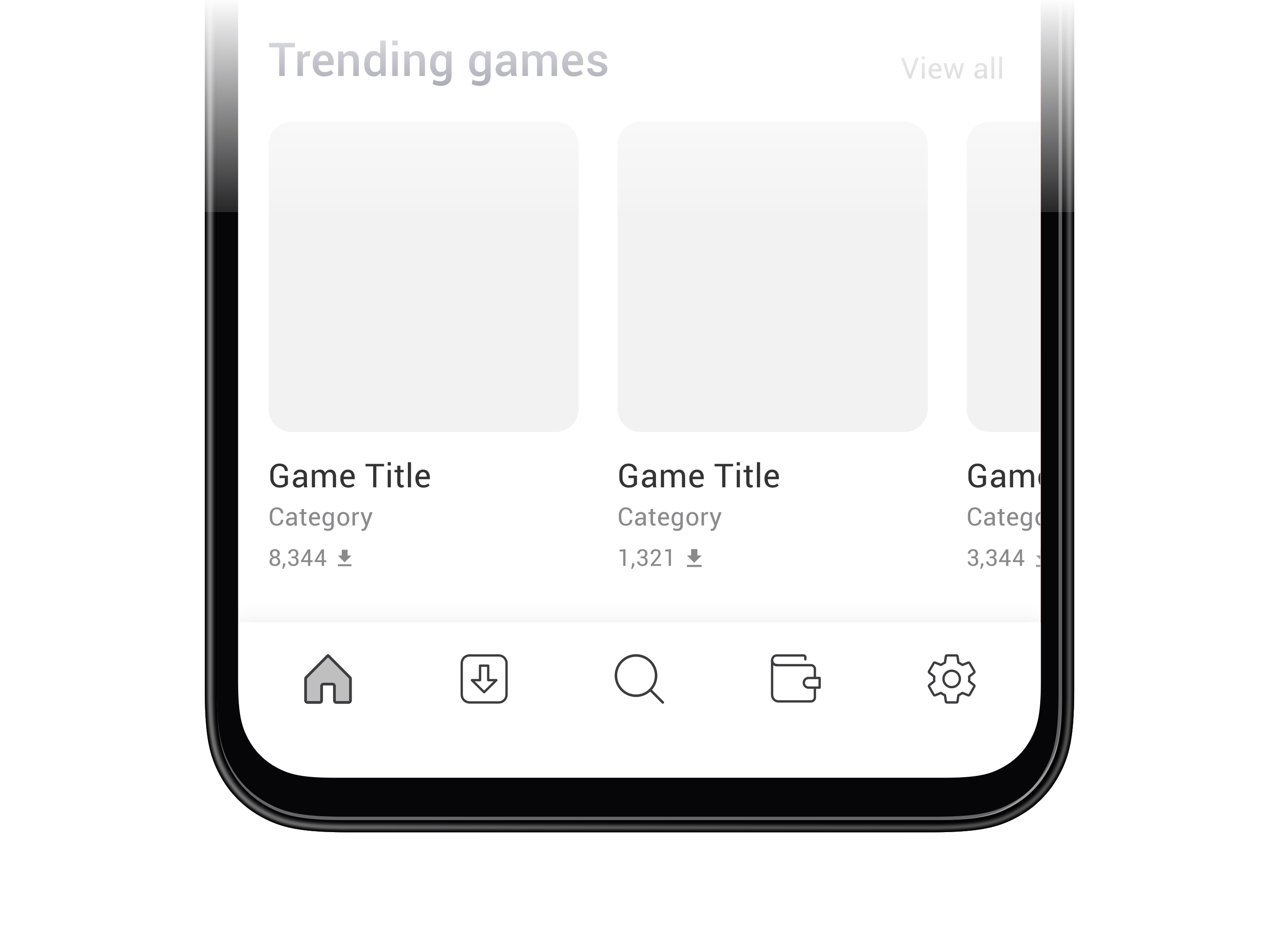 In this screen, user can search for a game by title and also can explore more things with Trending games and Categories. This help increasing the ability of users to exploring and installing new game even without knowing the game title.
