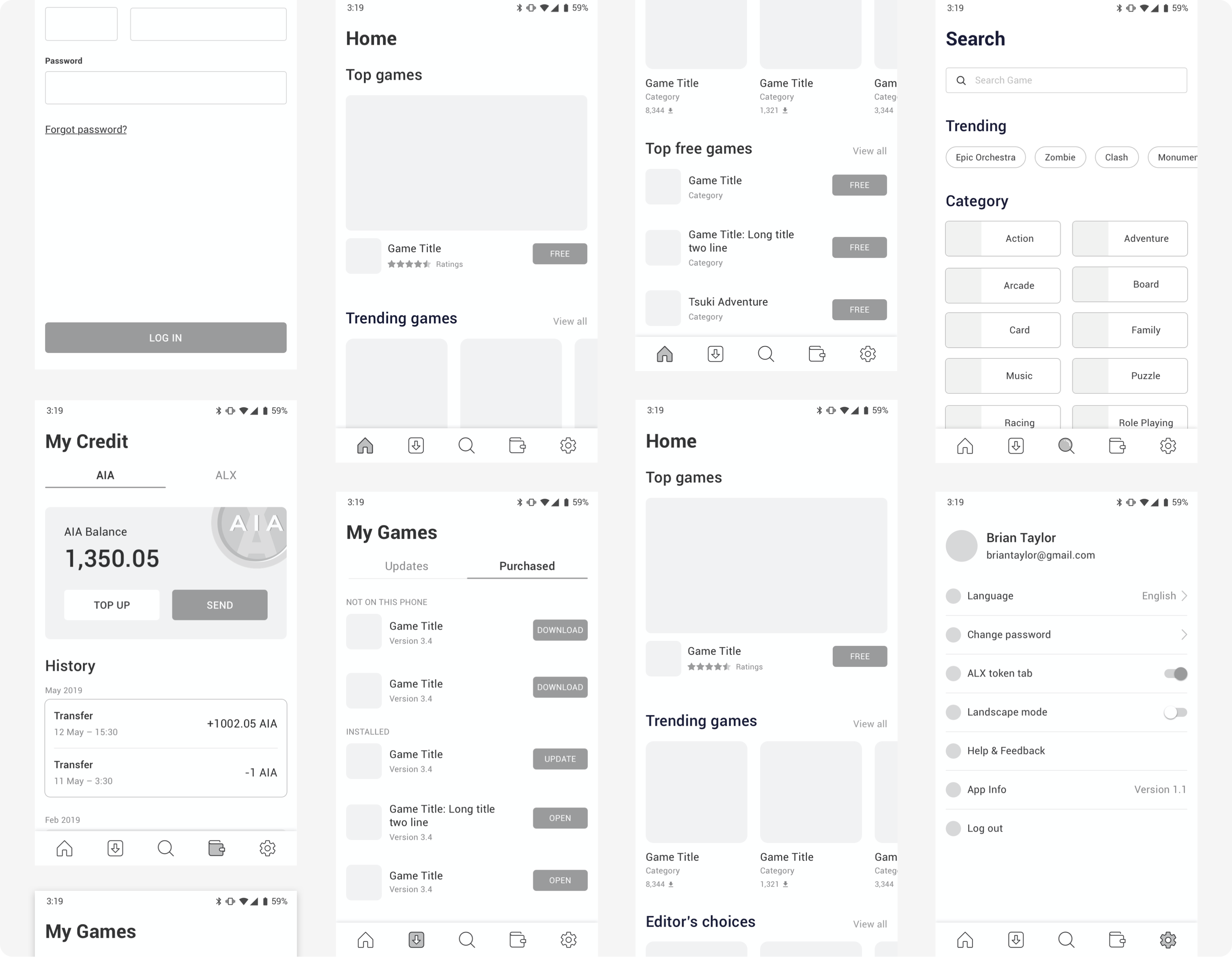 Below is some wireframes of ALAX's Store. To shorten this case study, I only present some key screens.