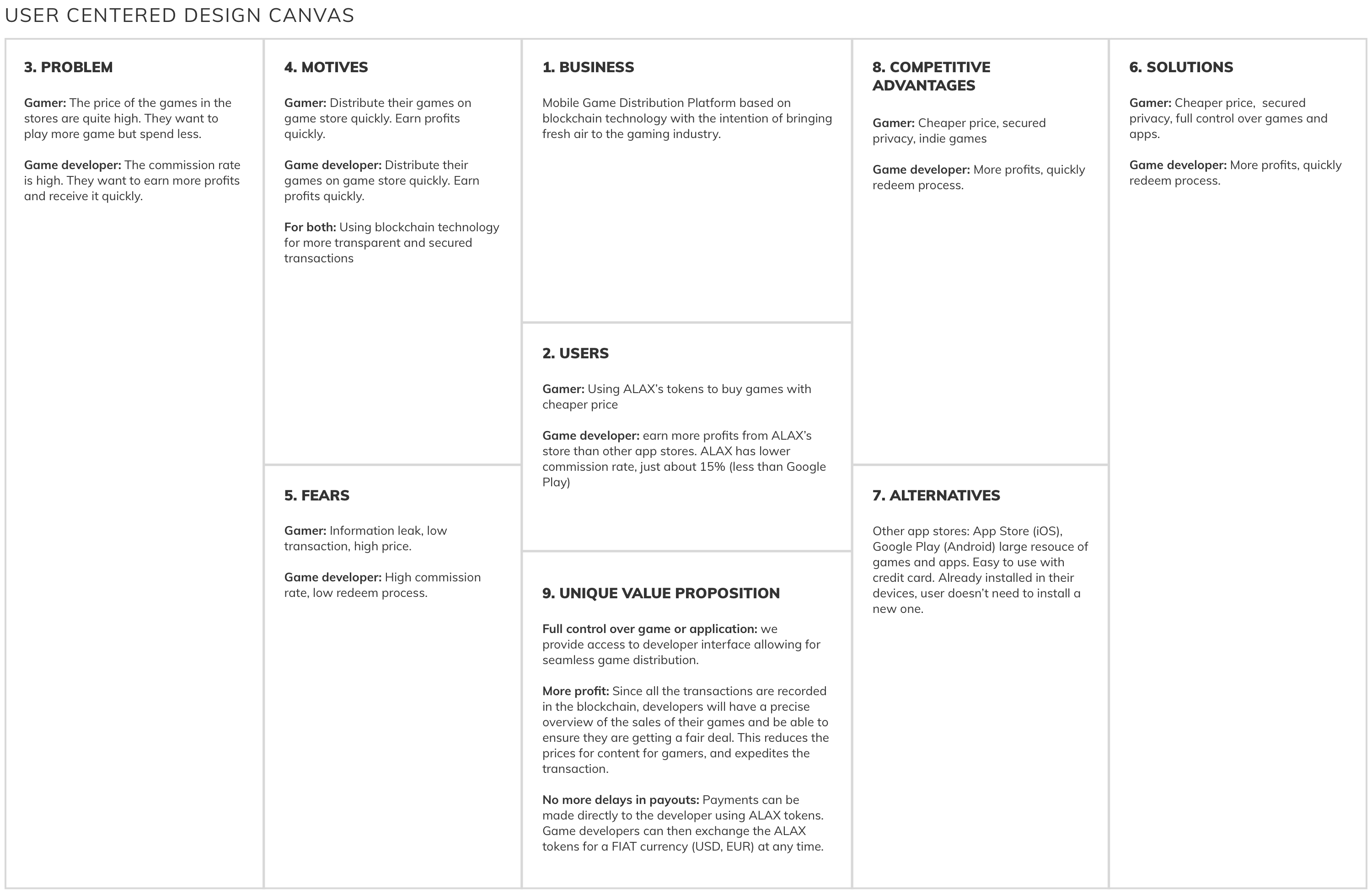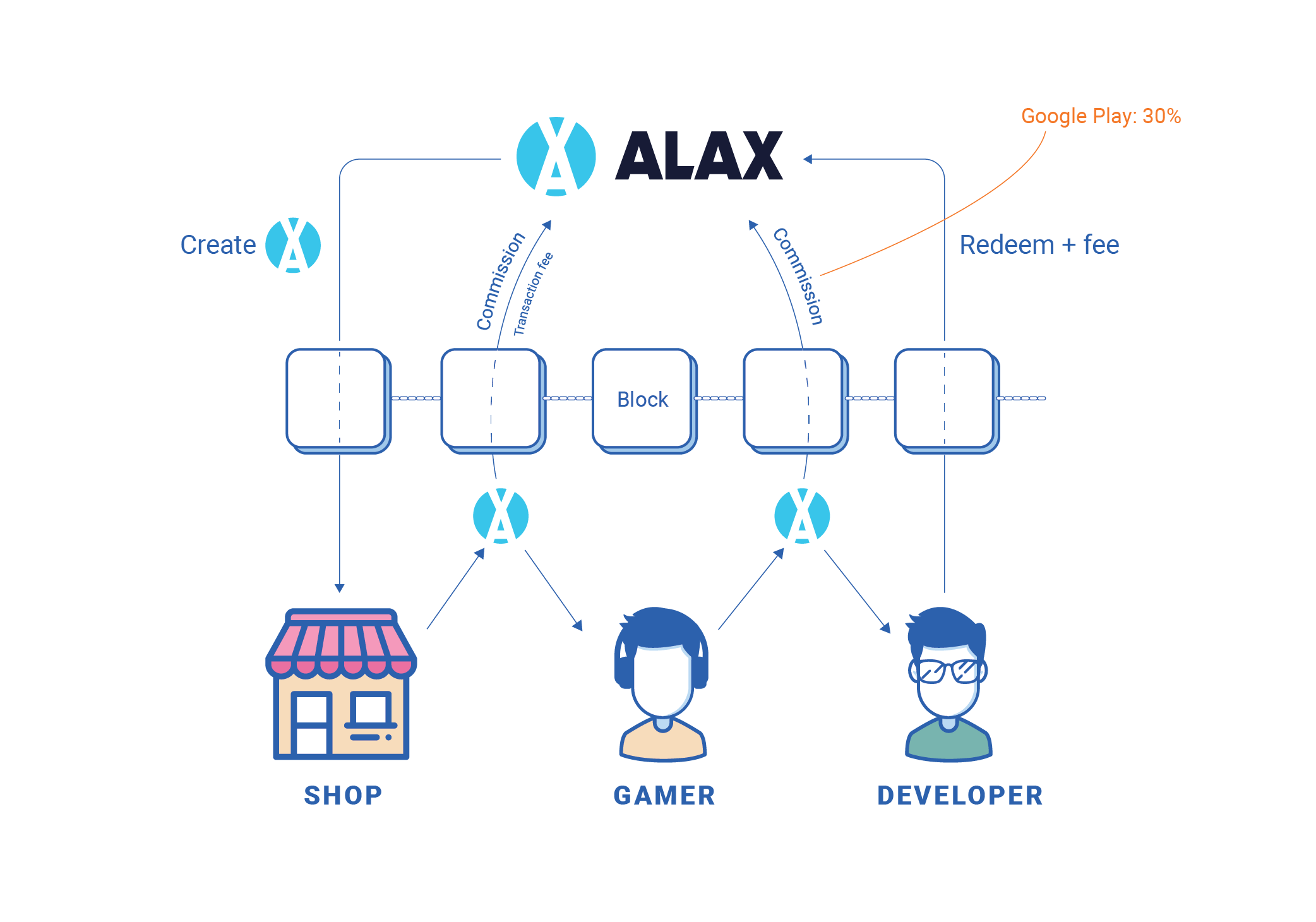 Instead of using a credit card, all transactions in ALAX Store are proceed with tokens. ALAX's tokens are distributed to retailers. Game developers publish their games on the ALAX Store. Gamers can buy tokens from retailer then top up to their account and use it to pay for games. Profits will be paid to the developers, and ALAX gets commission from that.