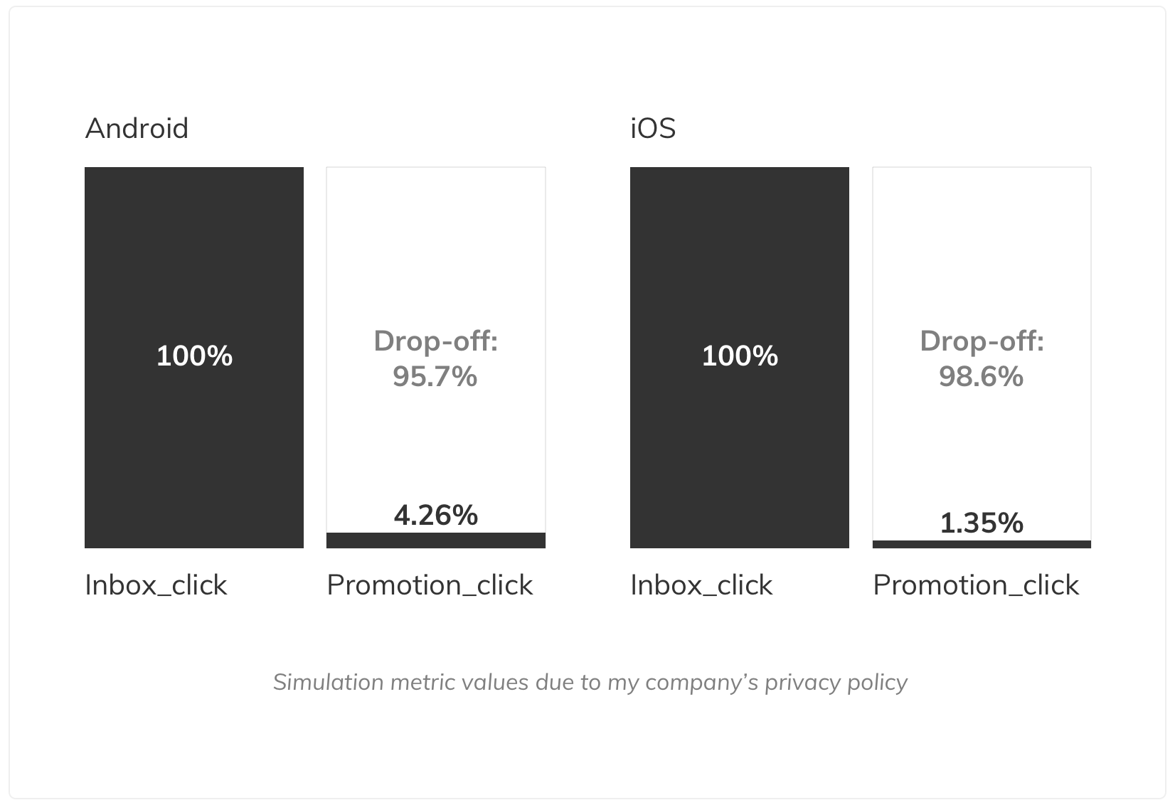 After opening Inbox, the percentage of users who continue to open a promotion is 4.26% for Android and 1.35% for iOS (in the last 30 days). Previously, the team had not thought about increasing profits through Inbox, so there was no base line to compare to. But based on my observations, the uninteresting promotions somehow stifled this rate. My hypothesis was by improving the design of promotions in particular and the Inbox in general, we could increase these conversion rates.